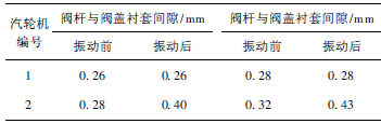 表1為2臺(tái)汽輪機(jī)GV3出現(xiàn)明顯振動(dòng)前后的2次檢修數(shù)據(jù)。