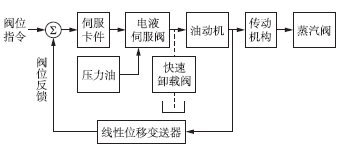 圖2為GV3的控制原理圖。由圖2可知,GV3為閉環(huán)控制,閥位指令信號(hào)與閥位反饋信號(hào)比較后形成閥位偏差信號(hào),經(jīng)伺服放大器轉(zhuǎn)換成電流信號(hào)并進(jìn)行電功率放大,接著在電液伺服閥中將電信號(hào)轉(zhuǎn)換成高油壓信號(hào),用以驅(qū)動(dòng)油動(dòng)機(jī),進(jìn)而通過傳動(dòng)機(jī)構(gòu)改變閥位。線性位移變送器測量的閥位信號(hào)反饋至調(diào)節(jié)回路的輸入端,使閥位偏差信號(hào)逐漸減小。當(dāng)閥位偏差為零時(shí),系統(tǒng)便達(dá)到新的穩(wěn)定狀態(tài)。