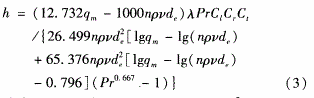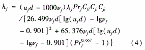 式中 h———水對(duì)流換熱系數(shù),W/(m2?K)